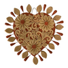 CORAZON PLANO PARA PARED DECORADO 3 FLORES BARRO ROJO BARRO BLANCO BORDADO