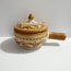 SALSERA TIPO CACEROLA CON ASA, FONDO BLANCO DECORADO TERRACOTA