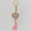 LLAVERO CORAZON FONDO TRADICIONAL DECORADO ROSA DESTELLOS DE ORO TRIDIMENSIONAL CADENA