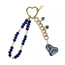 LLAVERO DOBLE CADENA Y CRISTAL CORTADO CON PERLA DE RIO AZUL COBALTO