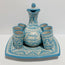SET 9 PIEZAS LICORERO PERSONALIZADO FONDO TRADICIONAL CENEFA AZUL TURQUESA FAMILIA