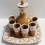 SET 9 PIEZAS LICORERO FONDO CAFE DECORADO BLANCO