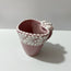 TAZA FORMA DE CORAZON FONDO ROSA DECORADO BLANCO CENEFA MIK