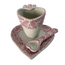 INCLUYE:  1 TAZA FORMA DE CORAZÓN, 1 CUCHARA CORAZÓN, 1 PLATO FORMA CORAZÓN