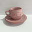 SET TAZA CHOCOLATERA MEDIANA Y PLATO 15 CM FONDO ROSA CENEFA ROSA