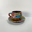 SET TAZA CHOCOLATERA MEDIANA Y PLATO 15 CM FONDO NEGRO MIK MULTICOLOR
