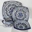 VAJILLA AZUL COBALTO FLOR AL CENTRO SEMICUADRADA