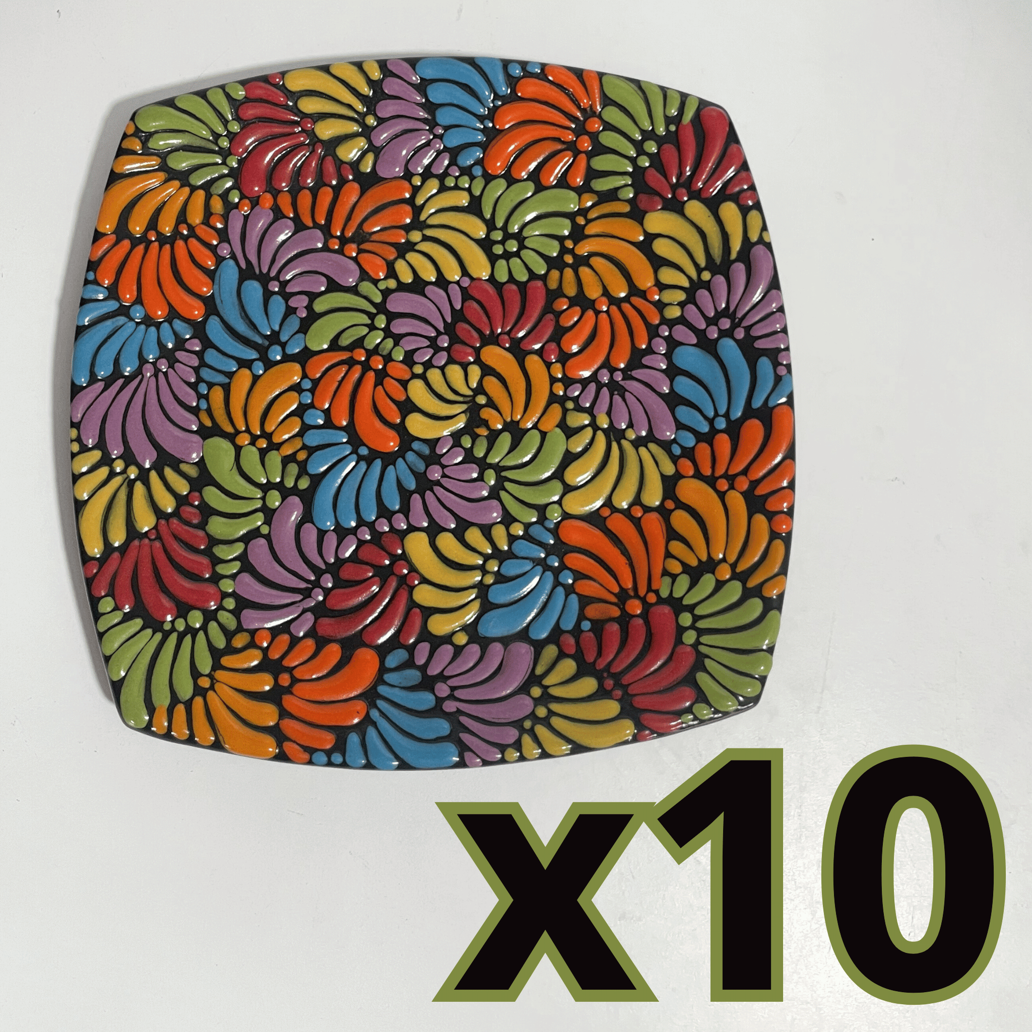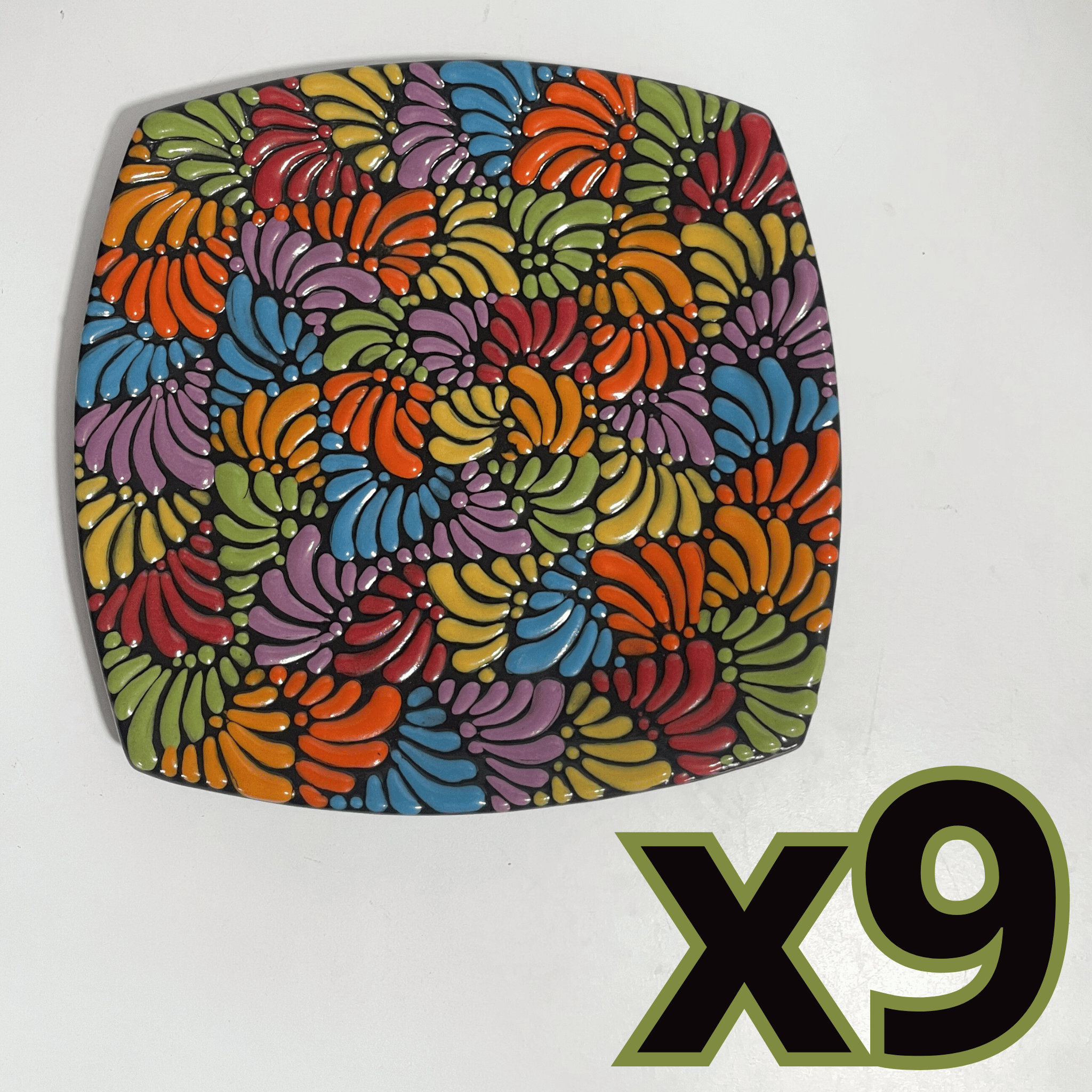 PLATO PLANO SEMI CUADRADO FONDO NEGRO MIK MULTICOLOR